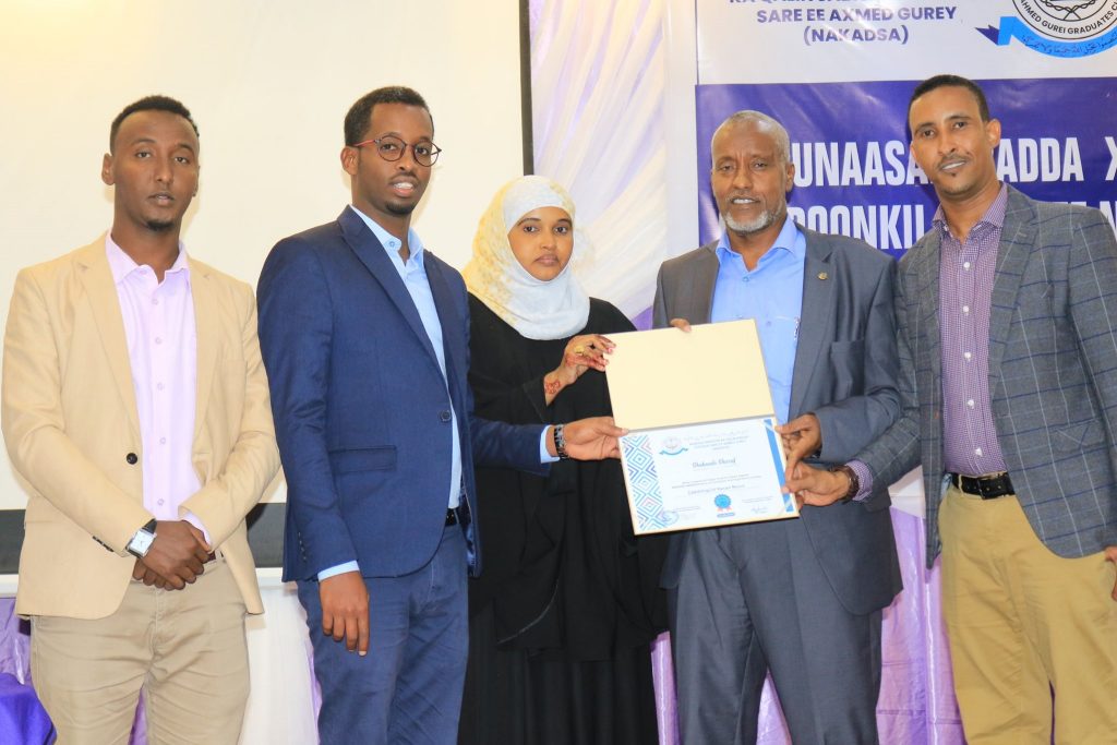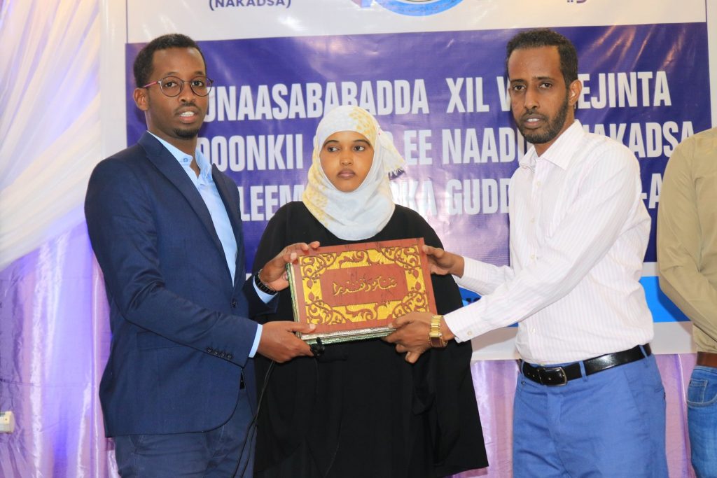 Shahaada sharafyada oo ay bixinayeen Guddoomiyihii hore ee Golaha Fulinta Nakadsa Ustaada Sacdiya Cabduraxmaan Xuseen, Guddoomiyihii hore ee Golaha dhexee Nakadsa Dr. Cabdulqaadir Maxamed Axmed “Keynaan” iyo Xog-hayihii horee Nakadsa Maxamed Ismaaciil Cumar “Khatami” ayaa waxaa lagudoonsiinayay Xubna Reer Nakadsa ah oo Muteeystay in la sharfo, Guddiyadii kala duwaanaa ee Naadiga la soo shaqeeyay iyo Cid walba oo si uun ula soo shaqeeysay ama u garab istaagtay Naadiga Nakadsa.